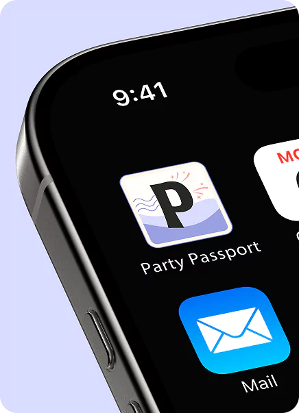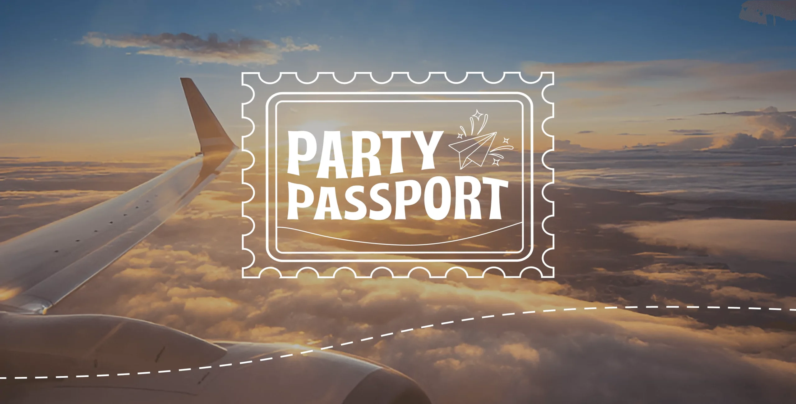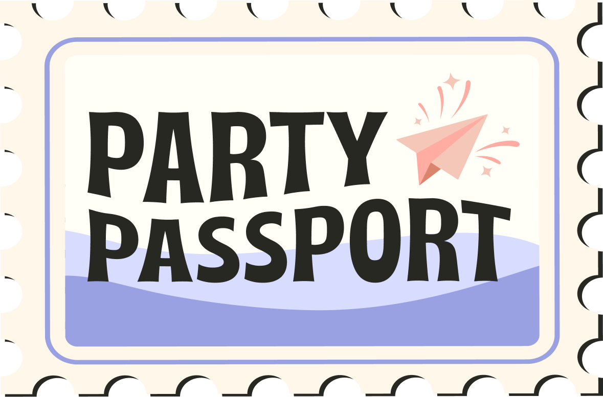 The Party Passport logo reflects the thrill of exploration and the joy of shared experiences, combining the excitement of travel with the energy of celebration.