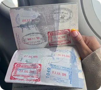The logo takes inspiration from a Visa / postage stamp, symbolizing the essence of travel, exploration, and collecting experiences.